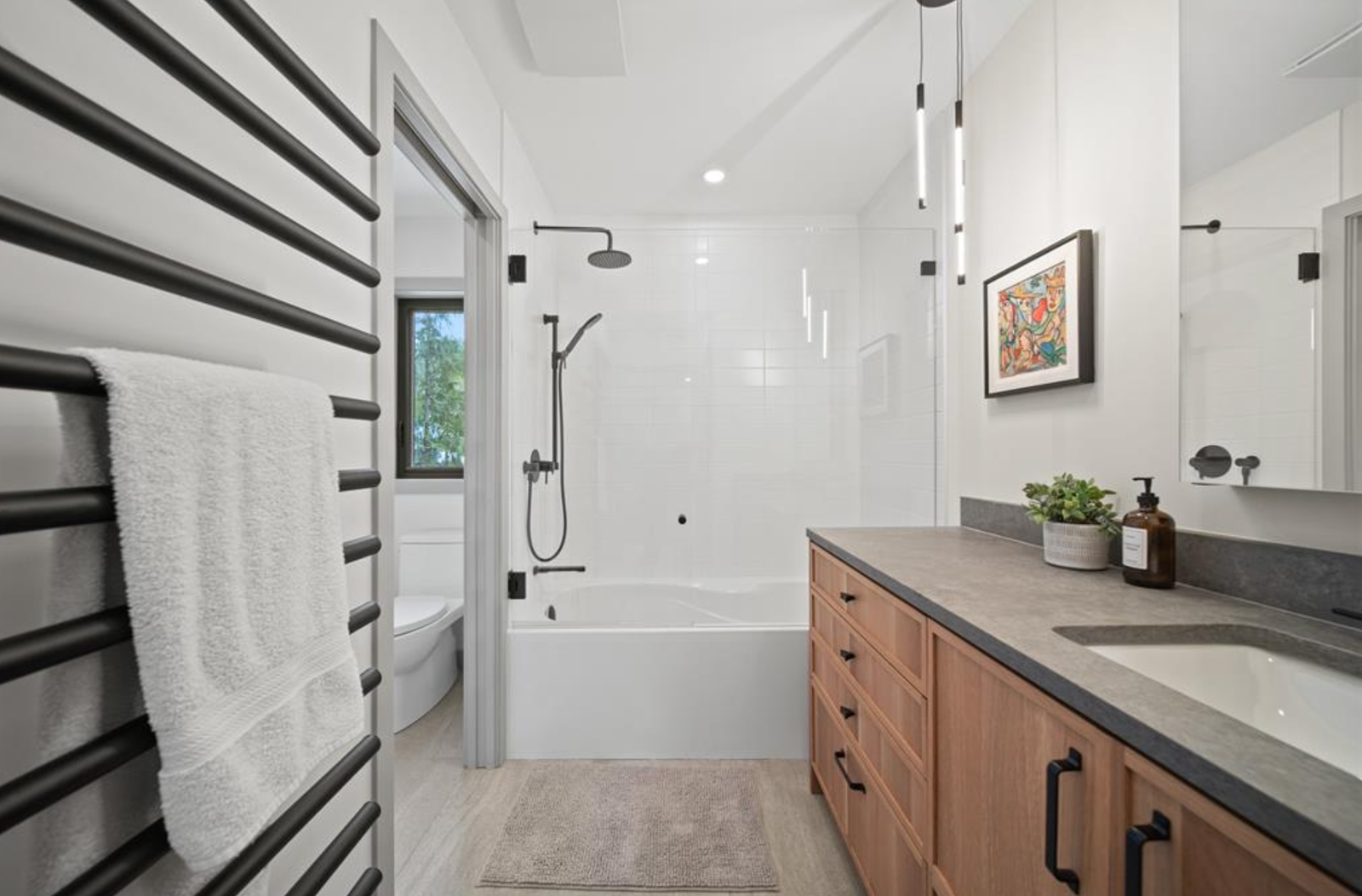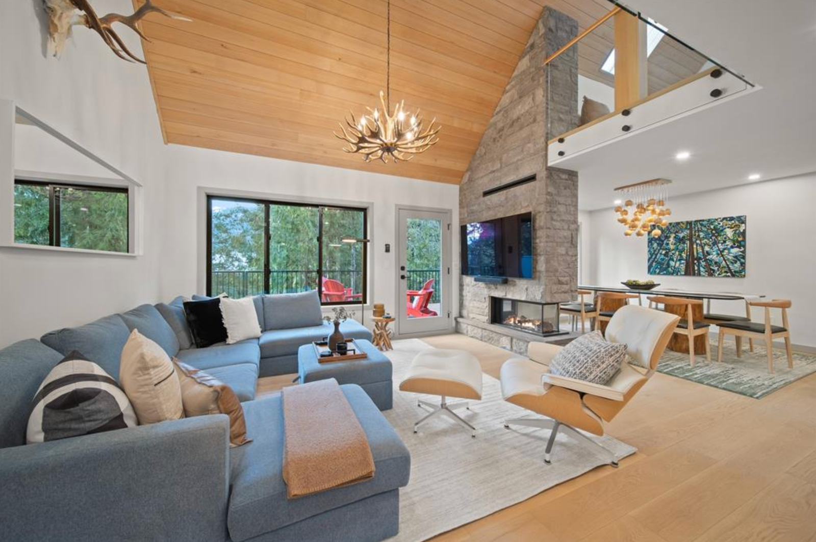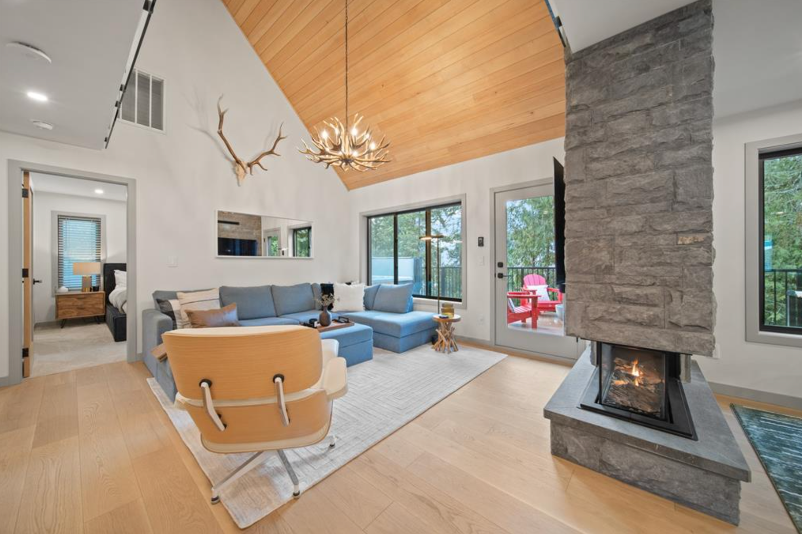 Fully reimagined duplex that lives like a single-family home, offering exceptional privacy with no shared walls and its own garage. Completely re-envisioned, blending modern mountain design with comfort and durability. Features include a metal roof with snow stops, cedar siding, new windows, composite decks, and exceptional outdoor living with a 7-person hot tub, BBQ hookup, and fire bowl. The interior has been structurally redesigned with vaulted ceilings, hemlock finishes, glass railings, a custom kitchen with oak cabinetry, quartz countertops, premium appliances, engineered oak floors, spa-inspired bathrooms with heated tile, and a striking 3-sided fireplace clad in Whistler basalt stone. Comfort is enhanced by a new heat pump, upgraded insulation, and new electrical and plumbing. (32423869)